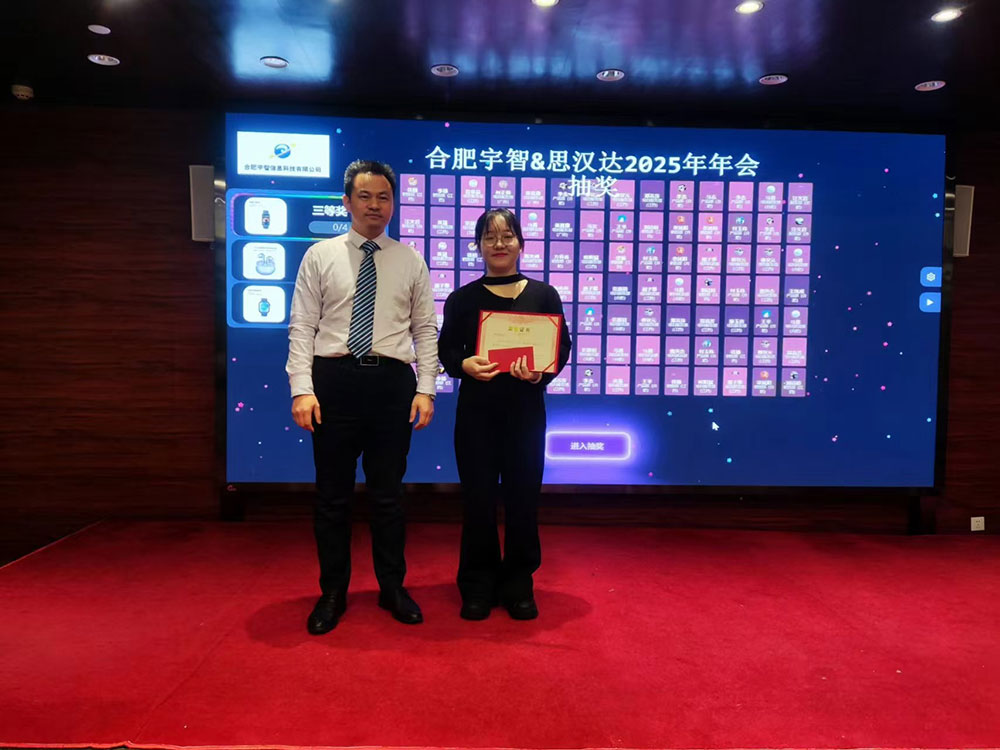 2025年1月24日,合肥宇智公司隆重召开年度总结大会,全面回顾过去一年的成果与经验,并规划新一年的发展蓝图。会议涵盖年终总结、优秀员工表彰、幸运抽奖及全员合影等环节,现场气氛热烈,展现了企业蓬勃向上的精神风貌。